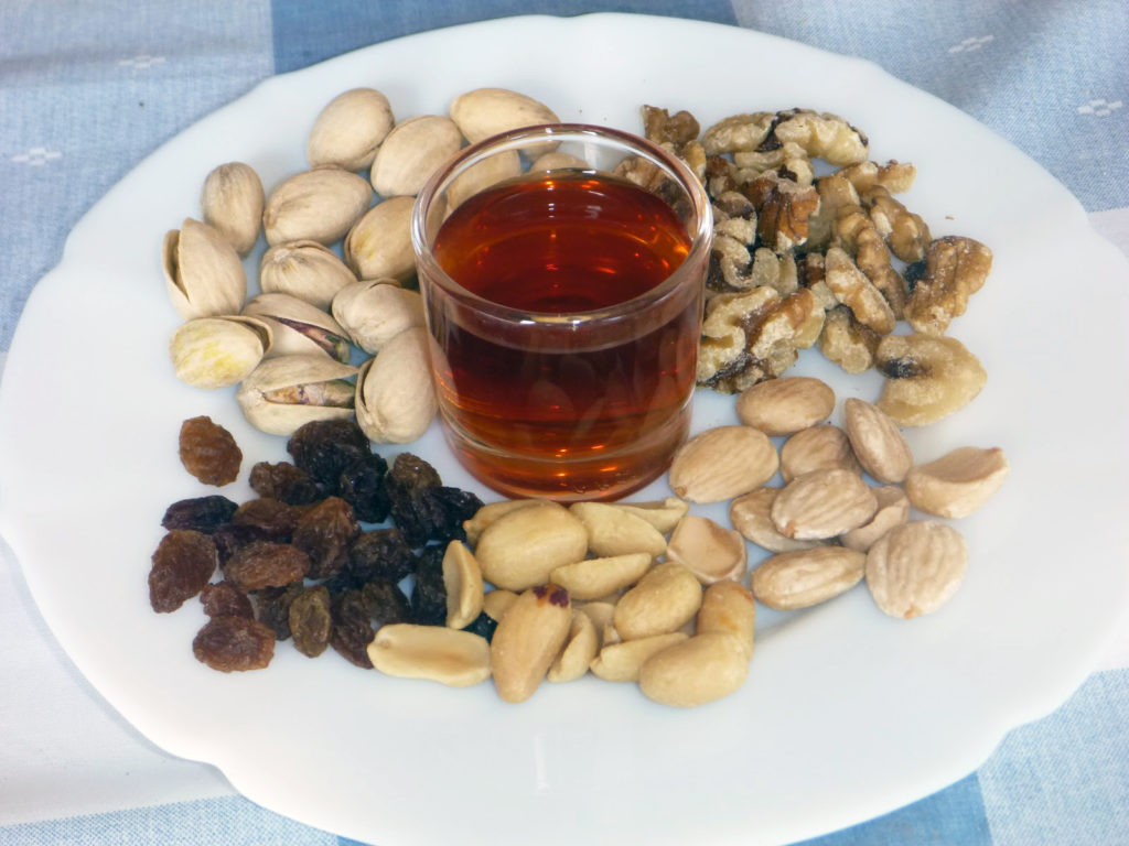 Les postres de músic són una d’aquelles troballes exquisides i senzilles: Un grapat de fruita seca variada i un gotet de moscatell. Típicament contenen ametlles i avellanes torrades i pinyons, tot i que poden contenir altres fruites seques com nous o cacauets, i fruita dessecada com panses, albercocs o figues. Encara que no és tan tradicional, es pot substituir el moscatell per vi ranci o vi dolç. I és habitual acompanyar-les amb un petit porró al costat, per si volem repetir.